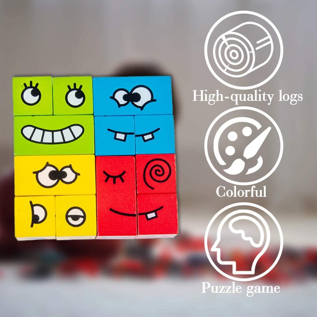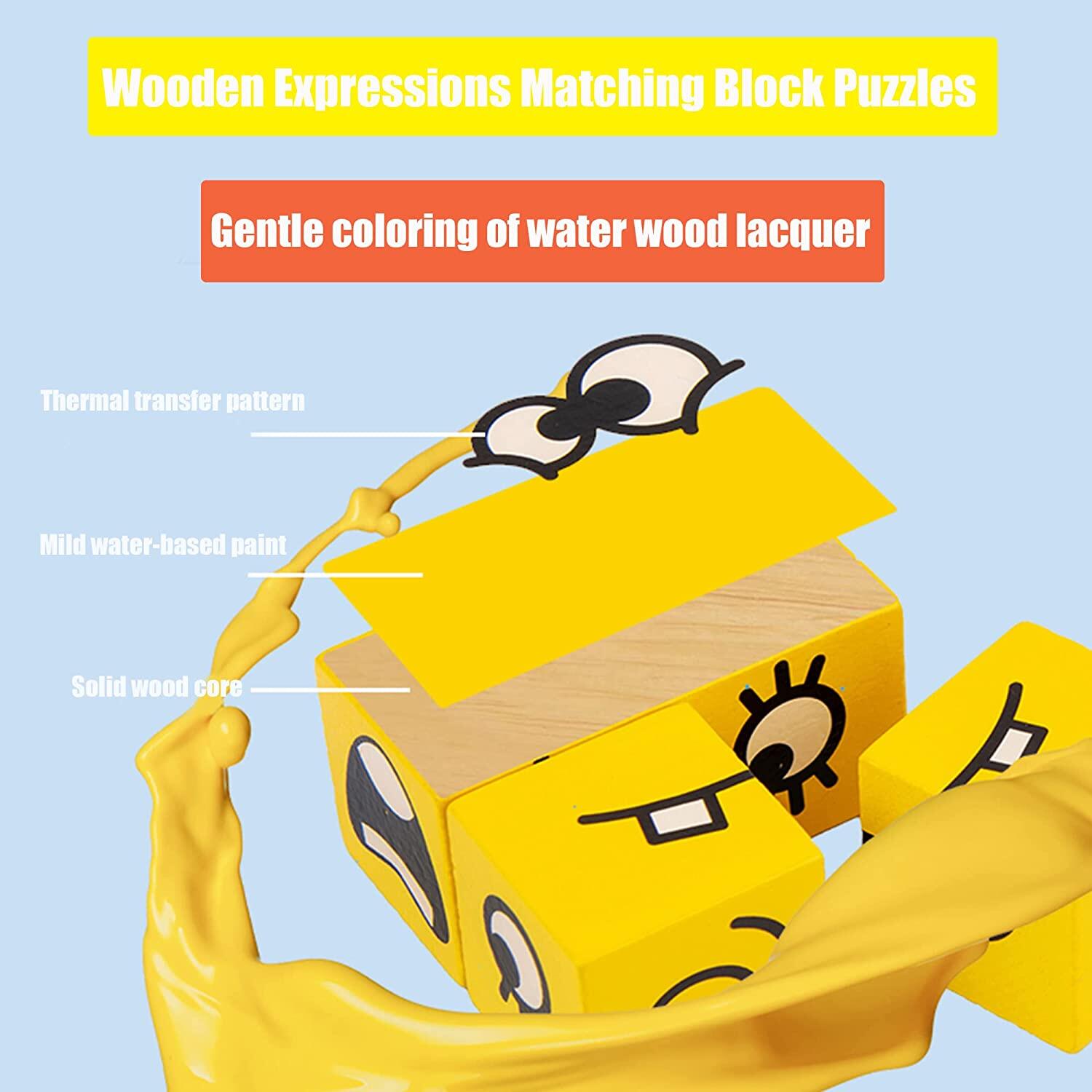 Wooden puzzles for kids ages 3-12. 14 wooden blocks with geometric expression and 50 pieces of challanging face cards stimulate children's interest in games. An interesting interaction for parent and child; Also suitable for 1-4 players. Play and learn in competitions.