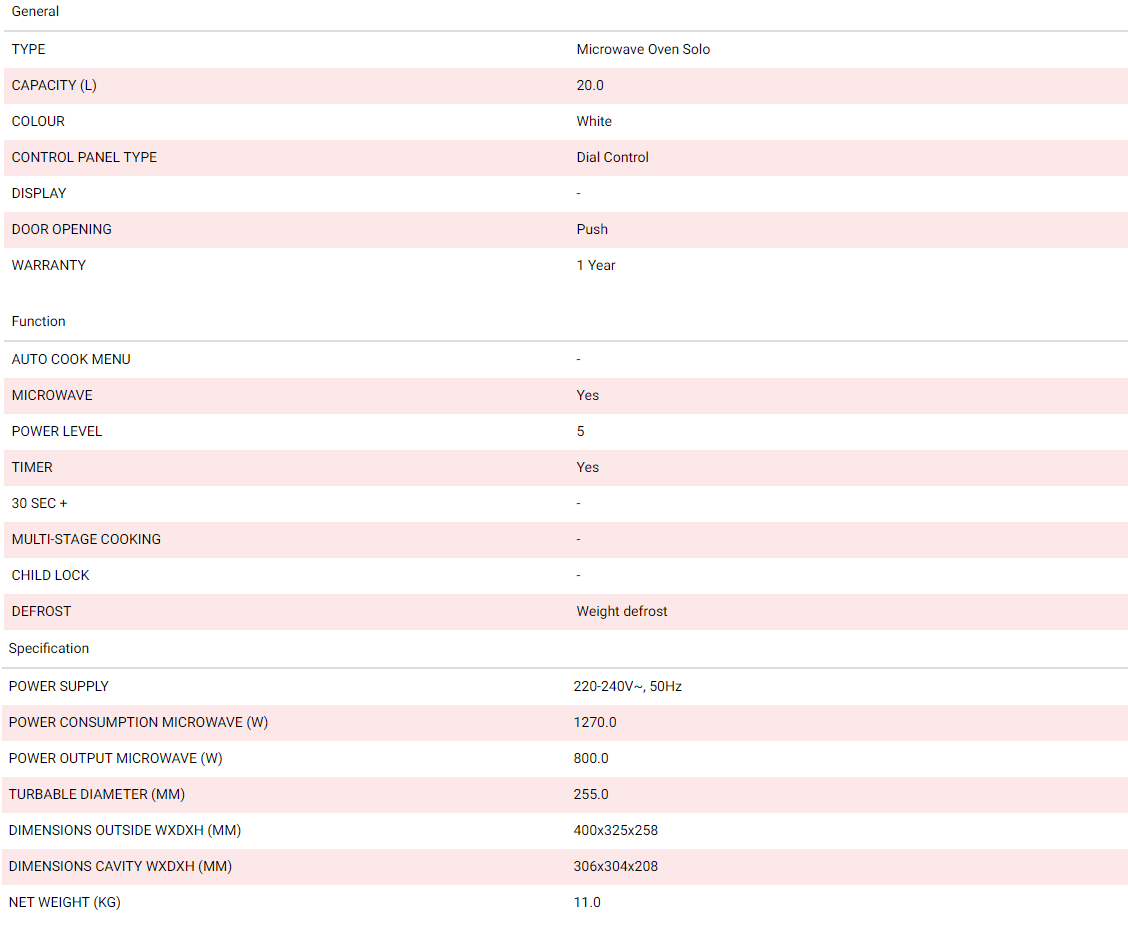 TOSHIBA MM-MM20P 20L BLACK MICROWAVE OVEN